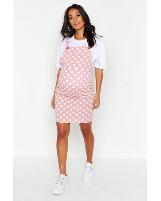 Boohoo Maternity Polka Dot Pinafore Dress In Pink Lyst